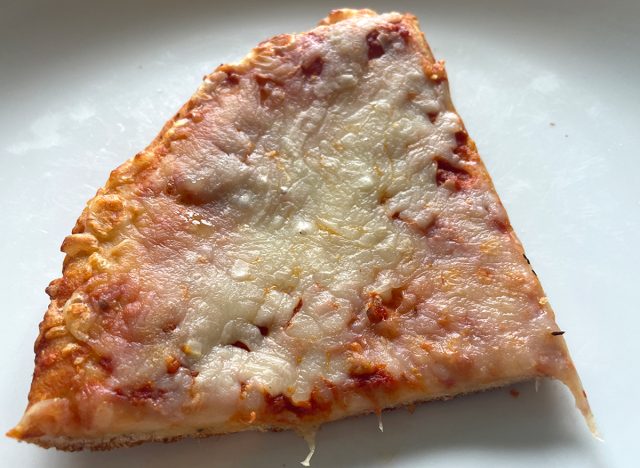 The Taste: Biting in, this slice was super salty and reminded me of school pizza – salty, bland, not terrible, but nothing you’d go out of your way for. It’s hard to pass up pizza but this one just isn’t worth the calories.