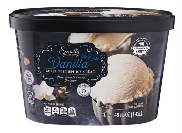 This super premium vanilla ice cream is so creamy and luxurious that you’ll want to save it for a special occasion (or not!). Made with five simple ingredients, it’s a pure, satisfying treat. No wonder it was chosen as an Aldi Fan Favorite in 2023. Comes in chocolate, too.