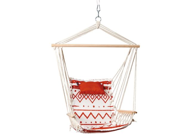 If you’re looking to enjoy some serious rest and relaxation this summer, Aldi will soon stock a new outdoor item that can assist you on your quest. Belavi Hanging Hammock Chairs are coming to Aldi’s shelves on July 3 and are slated to sell for $19.99 apiece. They feature attached pillows and armrests for comfort and come in three colors: classic beige, blue-striped, and a white and rust-colored boho pattern.