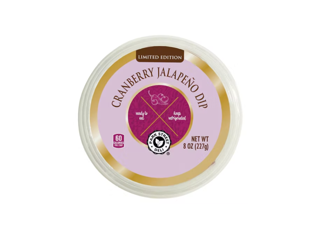 The Park Street Deli Cranberry Jalapeno Dip ($3.09) is a seasonal must-have. “Perfect for spreading on crackers or pairing with your favorite veggies, it adds a unique twist to your appetizers,” Aldi says.