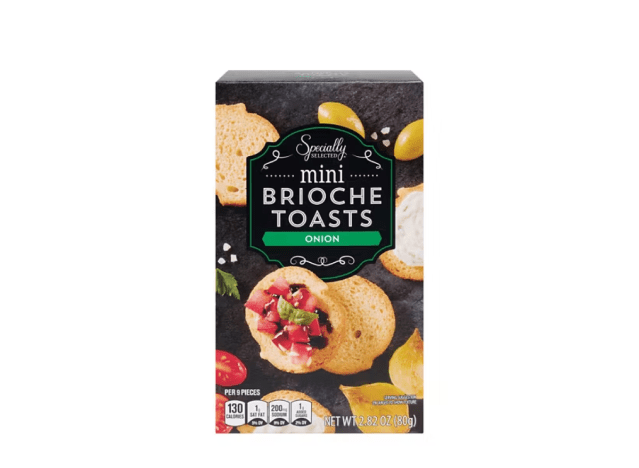 The new Specially Selected Mini Onion Brioche Toast Crackers ($1.65) are perfect for snacking or entertaining. “I just had these with some heated spinach and artichoke dip (located in the same refrigerated area as the cannoli dips). I’m going to need to buy a lot more of these toasts before they do away with the charcuterie section this year,” one happy Aldi shopper said.