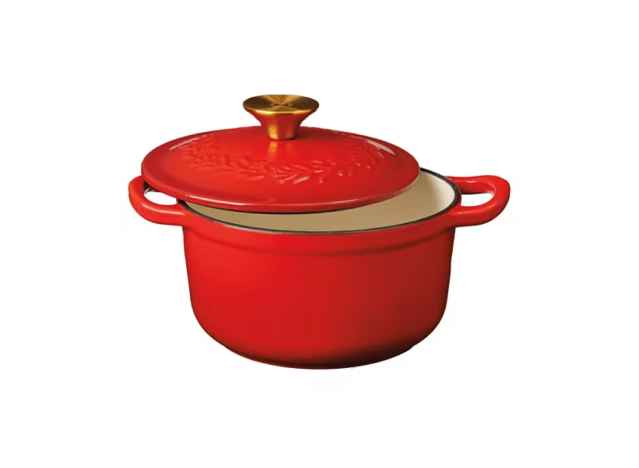 The Merry Moments 2 Quart Holiday Cast Iron Dutch Oven with long lasting porcelain enamel interior and exterior is a great deal at just $22.99. “Perfect for oven to table holiday serving,” the brand says. “Tight-fitting lid locks in moisture and enhances flavors.”
