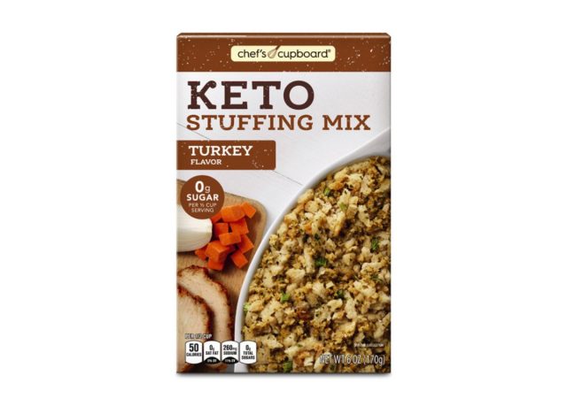 Don’t forget about your low-carb companions. You can get this private label stuffing mix for them, since it’s keto-friendly, with zero grams of sugar. It comes in Chicken and Turkey flavors, and the box is $3.69 for 6 ounces.