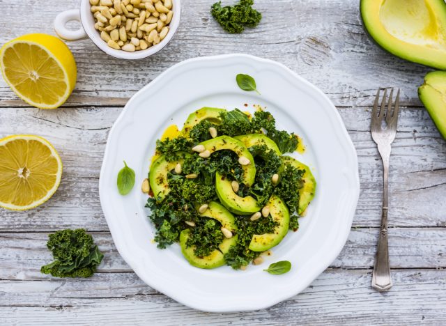 Then she’ll whip up a nutritious salad that keeps her full for a while. Ariana shared one of her go-to salads on Instagram: “new favorite! repost @saschapr… kale, avocado, cashews & teriyaki ✨ #vegan #wereonacookingkick,” she wrote. Her trainer told Glamour that he always makes sure that his clients get enough protein, fiber, and fat, so Ariana’s salad is the perfect balance.