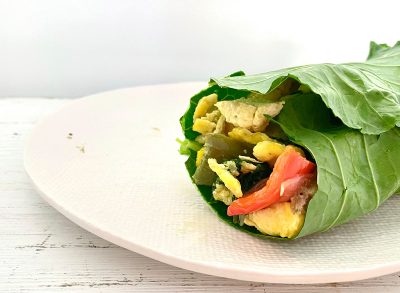 You can still enjoy your favorite breakfast on the Whole30 by simply swapping the tortilla with collard greens.