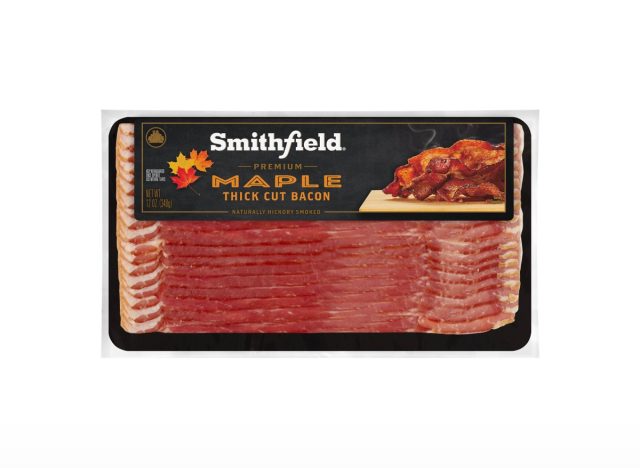 Smithfield Thick Cut Maple Bacon delivers a sweet-and-savory flavor combo, thick texture, and reliable grocery-store quality—it’s an easy upgrade from basic bacon without getting too fancy or expensive. “This bacon is by far the best–it’s got a great smoky flavor, thick, hearty slices and a hint of maple sweetness for the perfect finish,” says Chef Carl Miller — Executive Chef at Rita’s Seaside Grille on Folly Beach, SC. “It takes a little longer to cook, but it fries up nice and crispy in a cast-iron skillet.”