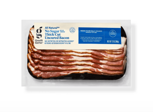 Good & Gather No Sugar Thick Cut Uncured Bacon is all natural, minimally processed with no artificial ingredients, no added nitrates or nitrites, offering you a go-to option when preparing your dishes. “One of the best bacon with no added sugar no add nitrates, healthy and the price is alright. Good for breakfast lunch or dinner,” one Target shopper said.