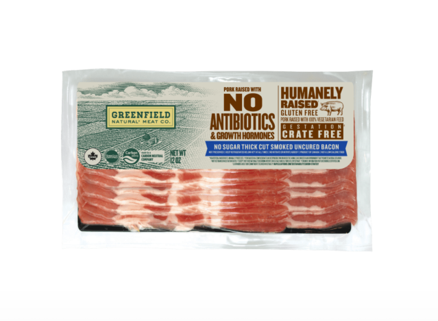 Greenfield No Sugar Thick Cut Smoked Uncured Bacon is sugar free and made from pork raised with no antibiotics. Shoppers love the clean ingredients and great taste of this thick-cut bacon, and mention that it cooks nicely in the microwave.