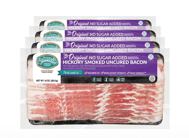 Pedersons Farms The Original No Sugar Hickory Smoked Uncured Bacon is a fan-favorite option made with 7 simple recognizable ingredients. “As close to perfect bacon there is,” one shopper said. “I was in search of a sugar free clean bacon and fortunately my search is over. This stuff is excellent and cooks out even better.”