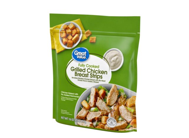 The Great Value Fully Cooked Boneless Skinless Grilled Chicken Breast Strips are made with premium white meat chicken. “This is some of the best grilled chicken strips I have found,” one Walmart customer shared. “These are actual chicken strips. The taste is great, and this chicken is great to use in different dishes as well, not just to top salads or make wraps. Great tasting and perfect for anything you need it for.”