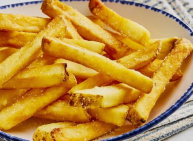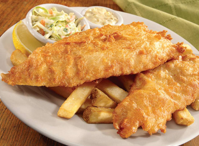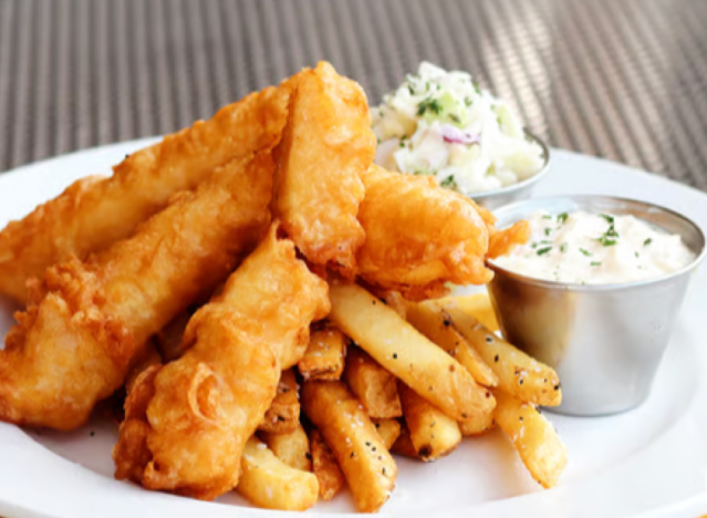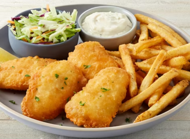 Red Robin is known for delicious burgers and sandwiches, but the chain also has excellent cod and fries. The Hand-Battered Fish & Chips is made with golden-fried white fish filets with tartar sauce, coleslaw and Steak Fries, with the option to go for garlic fries instead. “This tasty catch comes with cool, crunchy cole slaw for a little fresh crunch and our famous Bottomless Steak Fries®—because who wants to stop at just one helping?” the chain says.