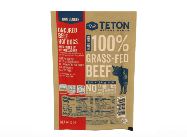 Teton Waters Ranch Bun Length Uncured Beef Hot Dogs contains just beef, water, and spices—and that’s it. “Delicious hot dogs, I bring them to barbecues so that I’m not eating the junky ones that are commonly at gatherings,” one Sprouts shopper said.