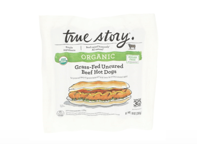 True Story Organic Uncured Beef Hot Dogs are made with 100 % quality beef and no dodgy additives. “Love the clean label organic ingredients. They taste awesome. Def expensive but a nice occasional treat without fear of unknown junk ingredients,” one shopper commented.