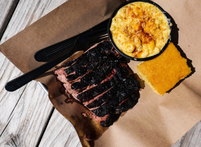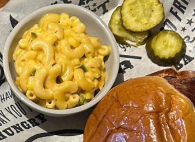 Mission BBQ’s BBQ Brisket Combo is a great way to experience the combo. “I’m a huge fan of the brisket sandwich at Mission BBQ. Chain restaurants are not usually my first choice but I’ve found their brisket sandwich perfect to my liking and very consistent,” one Redditor maintains. As for the mac and cheese, “This stuff is delectable, it tastes better every time I have it, and that’s including reheating it (even in a microwave)!” one Redditor writes.