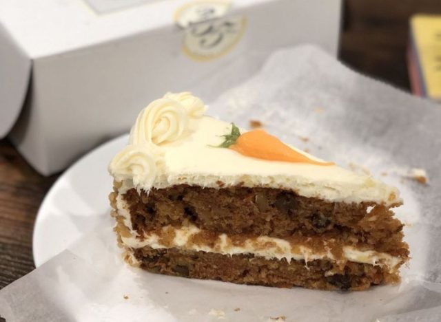 The Cake Bake Shop’s carrot cake, made without nuts or raisins, is an elegant take on a tried and true classic. One Yelper loved their cake so much that they wrote, “Delicious carrot cake!!!! Carrot cake was so moist!!! Pricey BUT the atmosphere makes it worth it. Loved the decor.” Hint: Make sure if you stop at The Cake Bake Shop to have your dessert to-stay—the bakery puts up gorgeous seasonal decor that you definitely do not want to miss.