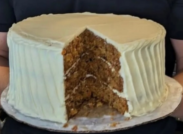 Serving a wow factor carrot cake is more than just looks. Many bakeries make them look so pretty, but texture, taste and moistness also matter. “Having a good carrot cake comes down to finding a good ratio in all aspects of building the dessert,” says Chef Rena. “You want the cake to be moist but structured, with a crumb that is soft and airy but not too dense. The ideal flavor combination has warming notes of cinnamon, nutmeg, and even ginger, all enhanced by the sweetness of the carrots.” She explains, “Flour additions like walnuts, raisins, and crushed pineapple improve the overall cake and moistness without becoming the focus. The cream cheese frosting should be smooth and tangy, and not overly sweet, so that it complements the spiced cake.”