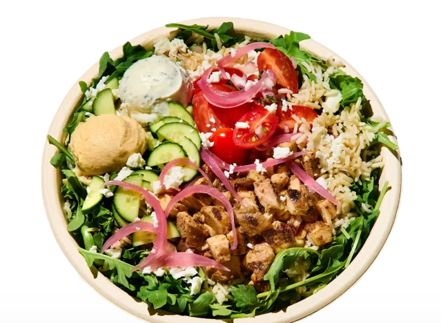CAVA’s Chicken + Rice bowl is a fan-favorite item, with grilled chicken, tzatziki, hummus, feta, Persian cucumber, tomato and onion, pickled onion, and arugula, finished with Greek vinaigrette. “I ordered the BYO bowl with Harissa Honey Chicken. Chicken was juicy, tender and has a great lil kick to it. I’m the type that loves a colorful bowl so I get all the toppings. Such a plus that Cava gives you unlimited toppings!” one fan shared.