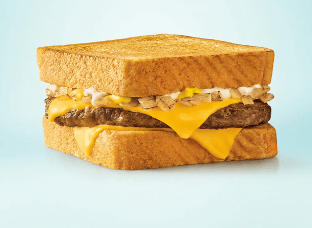Sonic occasionally features a Texas Toast Patty Melt on the menu, made with a quarter-pound beef patty, two slices of American cheese, grilled onions, mayonnaise, and mustard on thick, toasted Texas toast. “I always forget how great Sonic is patty melt is delicious!” one fan shared.
