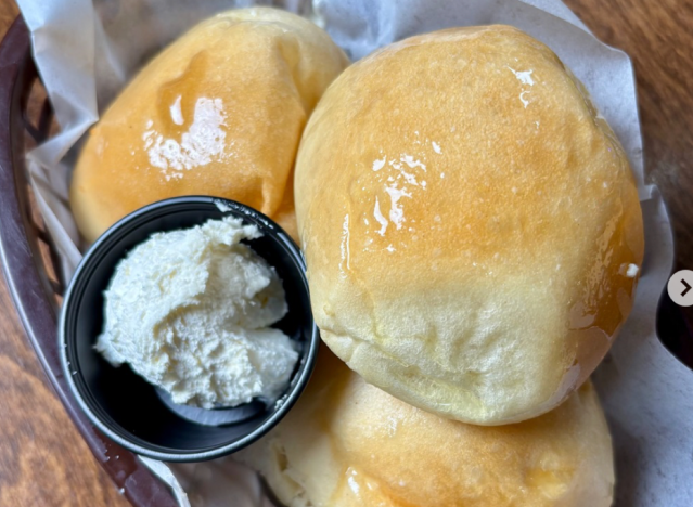 Outback is another destination for complimentary brown bread. “Its sweet molasses bread, best bread to have with butter, the perfect mix,” says one Redditor. However, others point out that you might not want to keep asking for more. The reason why it’s so good, according to one diner, is that there is an “irresponsible amount of sugar in it,” with one person claiming that a single loaf boasts 370 calories and has 51g of carbs, 15g of fat, and 10g of sugar.