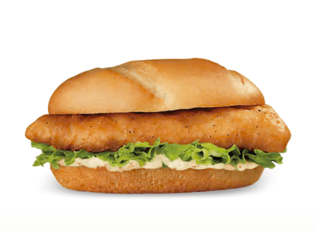 The Northwoods Walleye Sandwich at Culver’s is a popular menu item made with a hand battered, cooked to order fish fillet topped with tartar sauce and shredded lettuce on a lightly buttered, toasted hoagie roll. Diners can opt for a basket, which is a sandwich/fries/drink combo. The North Atlantic Cod Sandwich is also excellent.