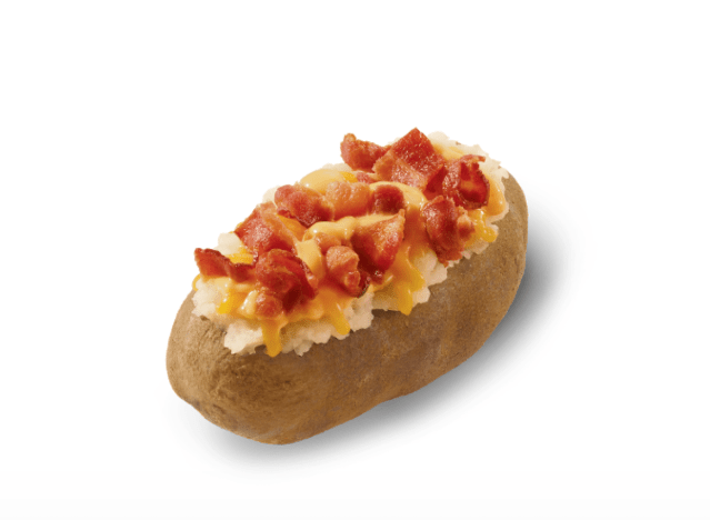 Wendy’s has several delightful loaded potatoes on the menu, like the Sour Cream and Chive Baked Potato: A hot, fluffy potato topped with the classic combination of chives, and sour cream. There’s also a Bacon Cheese Baked Potato and Chili & Cheese Baked Potato (a hot and fluffy potato topped with Wendy’s signature meaty, flavorful chili, rich, creamy cheese sauce, and shredded cheddar).