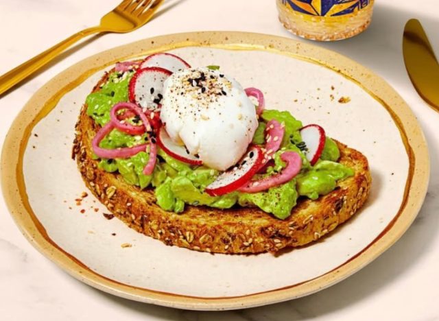 Avocado toast has become a trendy breakfast staple. While it’s simple, it’s customizable, packed with healthy fats and fiber and has become a wellness movement. There’s no shortage of recipes online with different variations, but when you’re in the mood for brunch, you can find avocado toast on any breakfast menu. The problem is, not all avocado toast is created equal. To help sort through the countless options, Eat This, Not That! asked Therese Buchanan, home chef, food blogger & recipe developer at Tessie’s Table, to share her top picks. Here are the five chain recommendations for the best avocado toast.