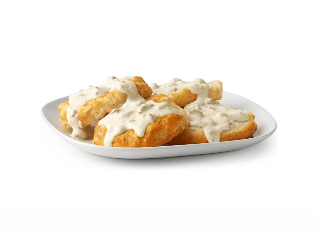 The biscuits and gravy at McDonald’s are outstanding, but not every location offers the item. According to Sullivan, biscuits and gravy are available in “Southern markets and worth seeking out.” She explains, “The gravy is simple and well-seasoned, the biscuit holds up without getting soggy underneath. Not the most complex version on this list, but the consistency and convenience make it a legitimate pick for a quick breakfast.”