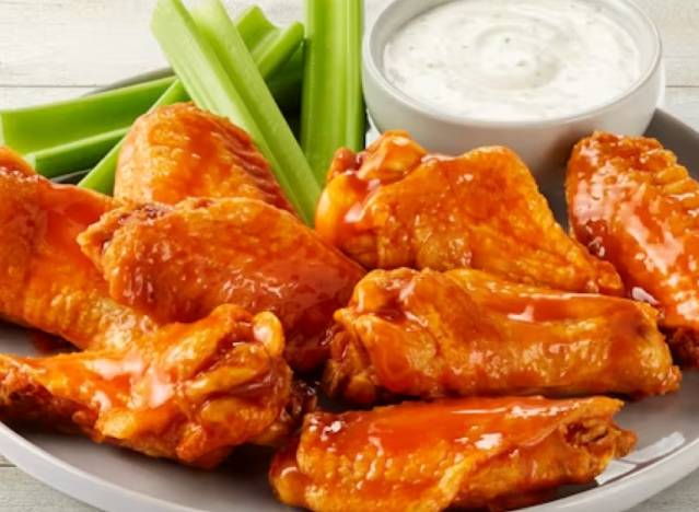 TGI Fridays serves its signature Buffalo wings, made with Frank’s Red Hot Buffalo Sauce with a side of creamy, chunky blue cheese dip. “It’s not a true TGI Fridays experience without our legendary wings! Drenched in our signature Buffalo sauce and served with a creamy blue cheese dip, these wings are the ultimate crowd-pleaser. Perfect for sharing with friends or keeping all to yourself – we won’t judge!” the chain captioned an Instagram post.