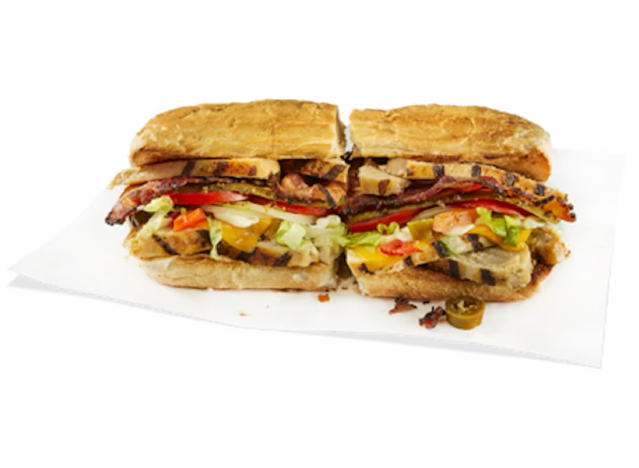 Jersey Mike’s Club Sub is definitely something special. “Our Applewood smoked bacon, sizzled to perfection, is nestled on top of a foundation of turkey, ham, and provolone, topped with mayo. Get it Mike’s Way for unbelievable flavor,” the chain says. “The club has been my recent favorite. I get it Mike’s Way with cherry pepper relish and mayo. So good!” one fan raved. “Best one. Hands down. Never get anything else,” another agreed.