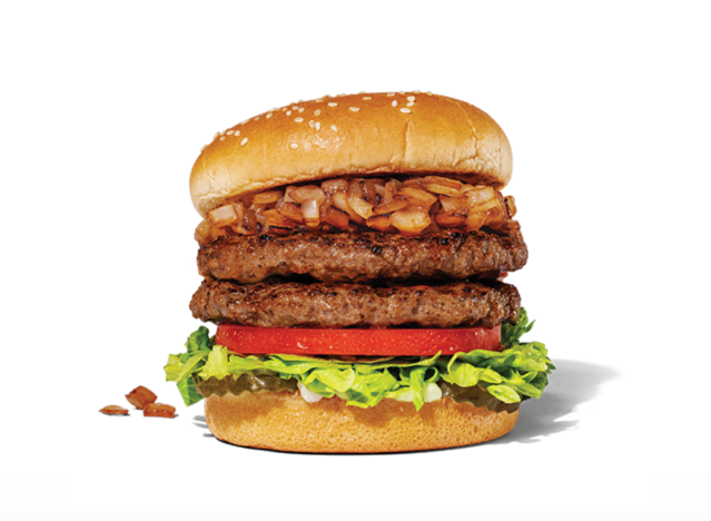 The Culver’s Deluxe ButterBurger is famous for a reason, made with “fresh, never frozen beef,” Wisconsin cheese, fresh lettuce, ripe tomatoes, pickles, sweet red onion, its signature mayo, and topped on a lightly buttered, toasted bun. There is also a version with two strips of bacon that is their “best burger,” writes a Redditor. “Best fast food bacon in my opinion. Used to be Wendy’s but I think Culver’s surpassed it,” says another.