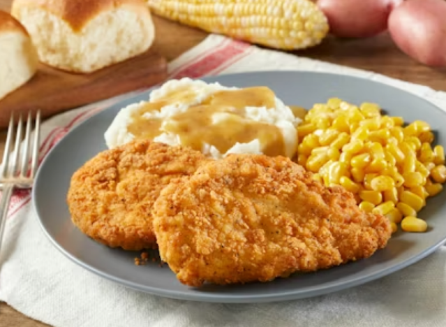 If you like fried chicken, head to Bob Evans. The homestyle restaurant serves Hand-Breaded Fried Chicken served with mashed potatoes, gravy, and corn. The chicken is hand-breaded all white meat chicken breasts, and diners maintain it is delicious. They also have chicken fried steak, which is a hit with carnivores.
