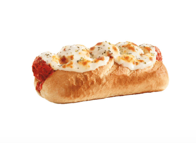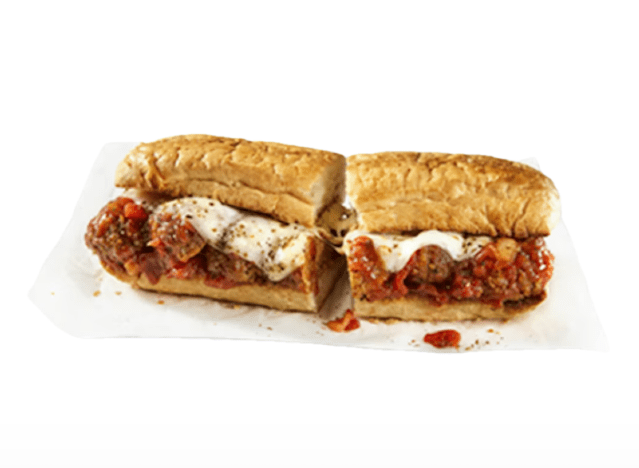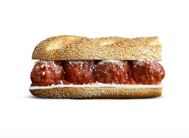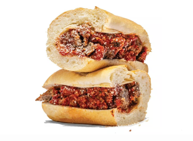 Capriotti’s Classic Meatball Sub usually comes with provolone, romano, and marinara sauce, but Swiss can be swapped. “It’s time to meet our meatballs! Handmade daily from our own recipe and available as a sub or part of a make-your-own meatball bar, they’re just as good as Grandma’s,” the brand once wrote in a Facebook post.