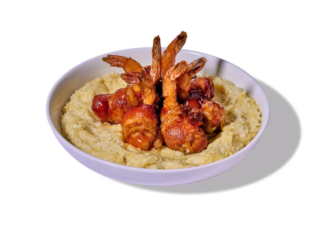 Walk-On’s Sports Bistreaux has their own fun take on the classic, southern dish. “Let’s talk about some Walk-On’s Voodoo Shrimp and Grits real fast,” a commenter said, followed by 3 drool emoji faces. “This isn’t like your normal shrimp and grits dish!! It’s 6 jumbo shrimp with Cream Cheese and jalapeño wrapped in crispy bacon! All six are tossed in sweet chili glaze and served on top of Walk-Ons famous corn grits!!”