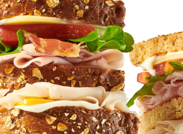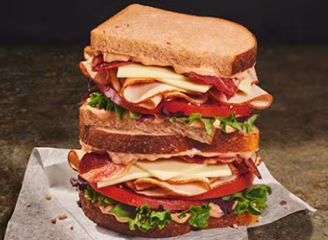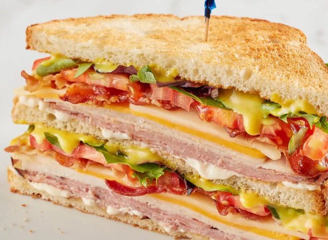Beloved for its generous portions and quality ingredients, McAlister’s Deli offers several club sandwiches, including the King Club, which Corrie Duffy, chef and food blogger at Corrie Cooks, raves about. “McAlister’s takes their classic club and doubles the bread,” he said. “You get roasted turkey, Black Forest ham, bacon, cheddar, Swiss, spring mix, tomato, mayo, and honey mustard on three slices of bread. It’s hearty, satisfying, and comes with your choice of side. A chain club that consistently delivers.”