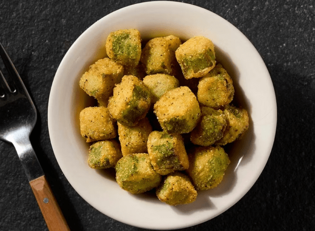 When it comes to Southern sides, it’s hard to beat Cracker Barrel. The iconic chain truly delivers home-cooked-style meals, and the fried okra is exceptional, according to Emma Sullivan, home chef and recipe developer at DailyCookingRecipe.com. “Cracker Barrel’s fried okra is the benchmark,” she says. “The cornmeal coating is light and crispy without being thick enough to hide what’s underneath — you’re actually tasting okra, not just batter.” Sullivan adds, “They fry it fresh and serve it hot, which is the only way fried okra should exist. I’ve never once left a piece on the plate.” And Sullivan says don’t forget that fried okra to-to isn’t as bad as you think because it travels better than most sides. “The cornmeal coating stays crispier longer, which matters if you’re picking up a family meal,” she explains. “It’s one of the few fried sides I’d actually recommend ordering to-go.”