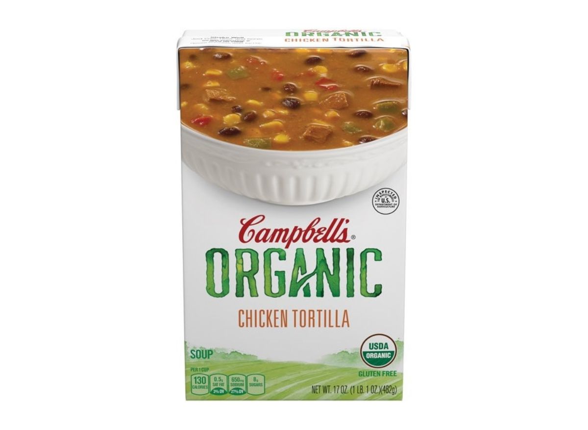 Three minutes in the microwave are all that stand between you and a bowl of savory organic chicken goodness in Annie’s chicken noodle soup. The brand famous for its bunny logo makes a tasty, healthy version made with pronounceable ingredients and just 90 calories per serving.