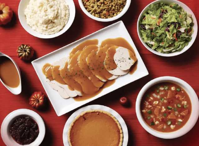 Celebrate Christmas at Golden Corral this holiday season. “Enjoy Roasted Turkey, Glazed Ham or Bone-In Pork Roast. Each meal includes a variety of traditional sides, a dozen yeast rolls and a whole pie. Pick up is available starting November 3,” the chain says.
