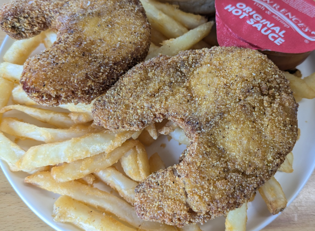 Diners at Diners at Lawrence’s Fish & Shrimp can enjoy delicious Catfish Strip combos that come with french fries. “Farm-raised but full lake-flavor catfish. Coated with a homemade cornmeal breading. These big, meaty strips are a fan fave,” the chain says.