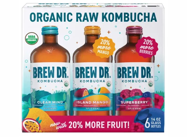 If you need a boost of good bacteria, stock up on this variety pack of Brew Dr Organic Raw Kombucha. It comes with six, 14-ounce bottles of three flavors: Clear Mind, Superberry, and Island Mango. It is currently $4 off.