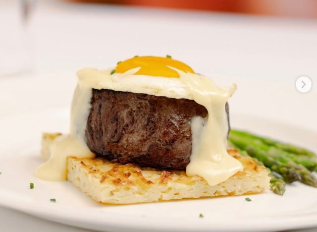 Morton’s The Steakhouse is another fine-dining chain that gets filets right. “Morton’s filet mignon is elegant, beautifully cooked, but sorely understated,” says Chef Rena. “They don’t drown it in butter, instead, they let the natural richness of the meat take center stage.” She explains, “The sear is dark and flavorful, and when you cut into it, the inside blushes just the right shade of pink. It’s one of the most consistently executed filets you can find at a national chain.”
