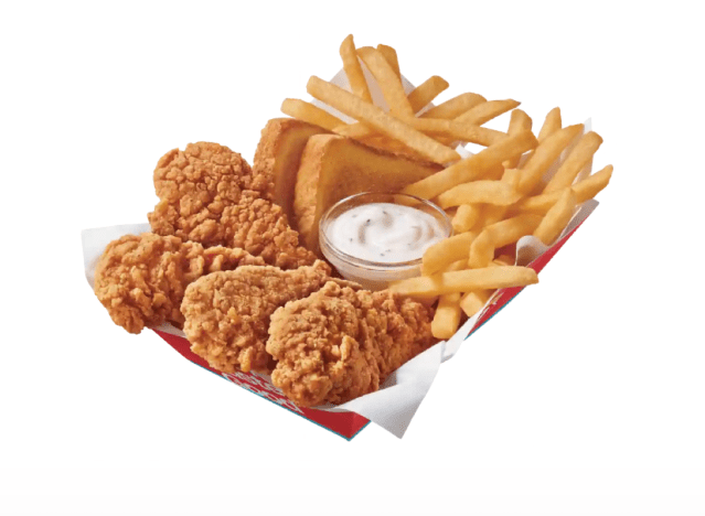 Dairy Queen‘s delicious Chicken Strip Baskets are an underrated must-have. “A classic for nearly 30 years, this basket almost needs no introduction,” the chain says. “Enjoy four or six hot, steamy, 100% all white meat tenderloin chicken strips with crispy fries, Texas toast and your choice of dipping sauce.” Guests can choose from Hidden Valley ranch, country gravy, BBQ, honey mustard, buffalo, zesty queso or ketchup.