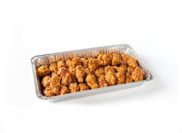 There are lots of options for large Cajun wing bundles at Popeye’s. My location sells 100 wings, “crispy, fried chicken wings and sauce or dry rub,” for $99.98 or 50 for $55.99. There are also options for boneless wings. “I feel like Popeyes boneless wings actually have a texture like wings, not just a random cut of meat. The spicy sauces tend to be good, but not super spicy,” one suggests. “With their signature hot it blows all the competition away,” another says. “Kinda reminds me of the old BWW back in the day,” a third says.