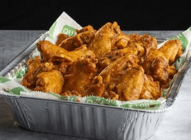 Hooters is one of the most famous wing joints in the world and offers lots of party pack options. The Wing Lovers comes with 50 Breaded, Naked, or Smoked Wings, 60 Boneless Wings, Ranch & Bleu Cheese, and a choice of 2 sides. Diners maintain that the chain offers “consistent quality,” and are super tasty.. “Hooters wings are damn good,” another agrees. “Their Daytona Wings are my favorite chain wing of all time, and extremely consistent quality for a chain,” another says.