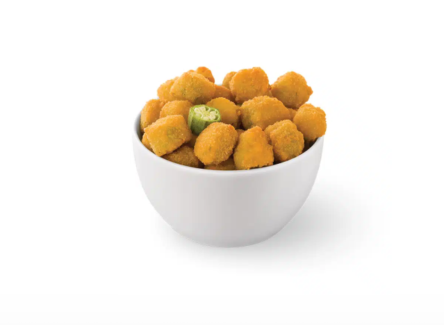 Cook Out, a southern fast-food chain serving burgers, fries, and milkshakes, offers fried okra as a side dish at select locations. It costs approximately $2.39 and features crispy, cornmeal-breaded, deep-fried pieces. According to diners, it is cooked crispy, with a golden-brown breading. “That would be my go to if it was at every location,” a Redditor confirms. “I noticed okra on a Cook Out menu board a couple of years ago, ordered it, loved it, and later could not find it anywhere. I thought I’d dreamed it, and then found it on the menu at Cook Out in King, NC. It’s as good as or better than I’ve had at ANY walk-in restaurant!” an Instagrammer writes.