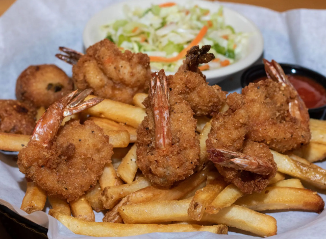 Fried shrimp and hush puppies are a highly popular menu combo at seafood chains, with the Southern staple pairing of crispy, juicy fried shrimp and delicious fried cornmeal hush puppies considered addictive comfort food at its best. When made from scratch and straight out of the fryer, this meal is unforgettable—and luckily plenty of chains offer variations on it. If you’re craving piping-hot, tasty shrimp and hush puppies, here’s where to go.