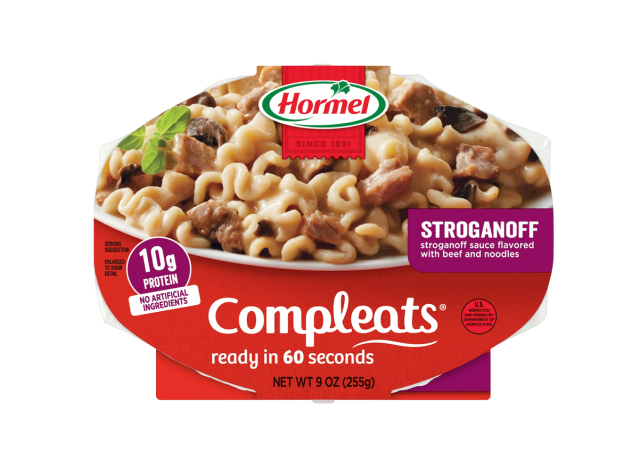 Hormel Compleats Stroganoff is made with rich stroganoff sauce flavored with tender beef and noodles. “I have always loved this dinner!! My mom would make the hamburger helper stroganoff and my sister and I just loved it ! I love this too!! 60 seconds and VOILA!” one Walmart shopper said.