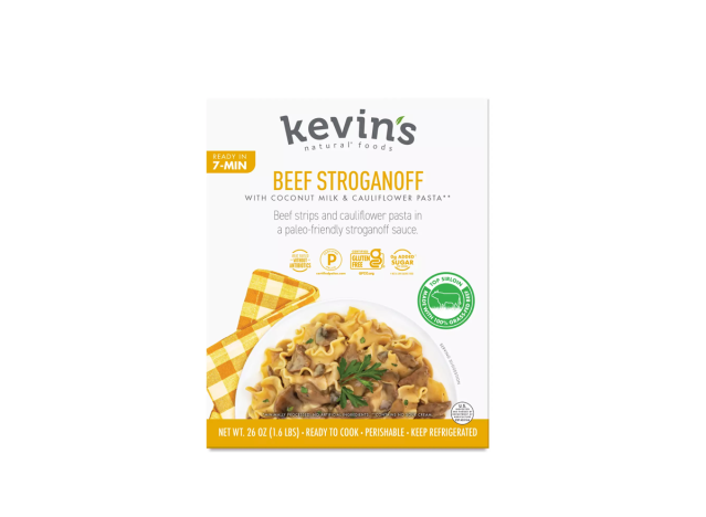 Kevin’s Natural Foods Beef Stroganoff is made with tender strips of grass-fed beef and cauliflower pasta in a paleo-friendly Stroganoff sauce made with mushrooms, beef broth, and coconut milk. “I loved this. It has plenty of meat in it. I loved the noodles. I poured over a toasted piece of Ezekiel bread and added sour cream to it,” one shopper said.