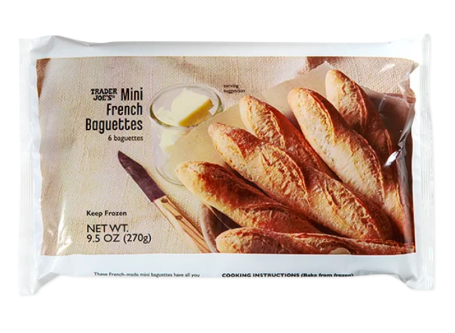 Trader Joe’s Mini French Baguettes take just six minutes to bake from frozen. “Whenever I’m in the mood for a baguette, I always end up eating like half of it before it gets stale, but then I tried these and all my baguette problems are solved,” one fan shared. “They taste good and are nice and crunchy I put a little water on the outside before it goes in the oven and 😉 🤌 .”