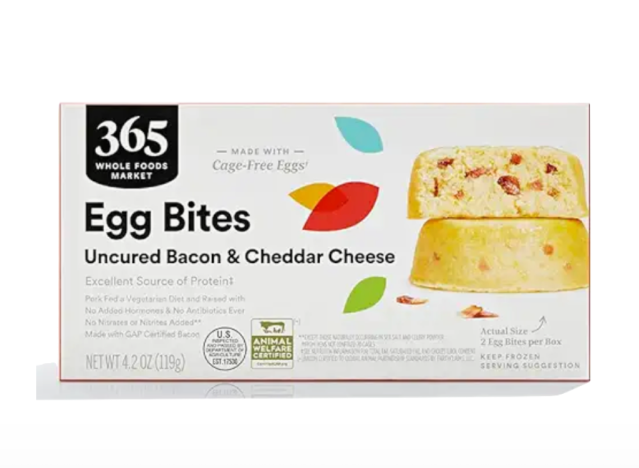 If you’re in a hurry, but want a quick, tasty and low-carb breakfast, the 365 By Whole Foods Market, Egg White Bites with spinach and feta will be your new freezer staple. “They’re light, sous-vide-style bites packed with fluffy egg whites, bright spinach, aromatic basil, and tangy feta — all baked until just set for a tender, satisfying texture,” says Batayneh. “Two servings deliver a protein punch with about 15 grams of protein to help keep you feeling full through a busy morning, while staying relatively low in carbs and calories.” She adds, “They’re naturally gluten-free and made without artificial flavors or colors, which makes them a handy option for a quick breakfast. Microwaveable in just minutes, these egg bites are perfect when you want smart convenience plus fresh-tasting ingredients to start the day.”