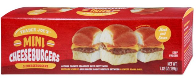 Trader Joe’s Mini Cheeseburgers are made with savory-seasoned fully-cooked beef patties topped with Cheddar and a dollop of tangy burger sauce, in a Hawaiian-style Aloha Roll. “These are essentially mini White Castle burgers and are supposed to be steamed. Follow the microwave instructions,” one Redditor recommended.